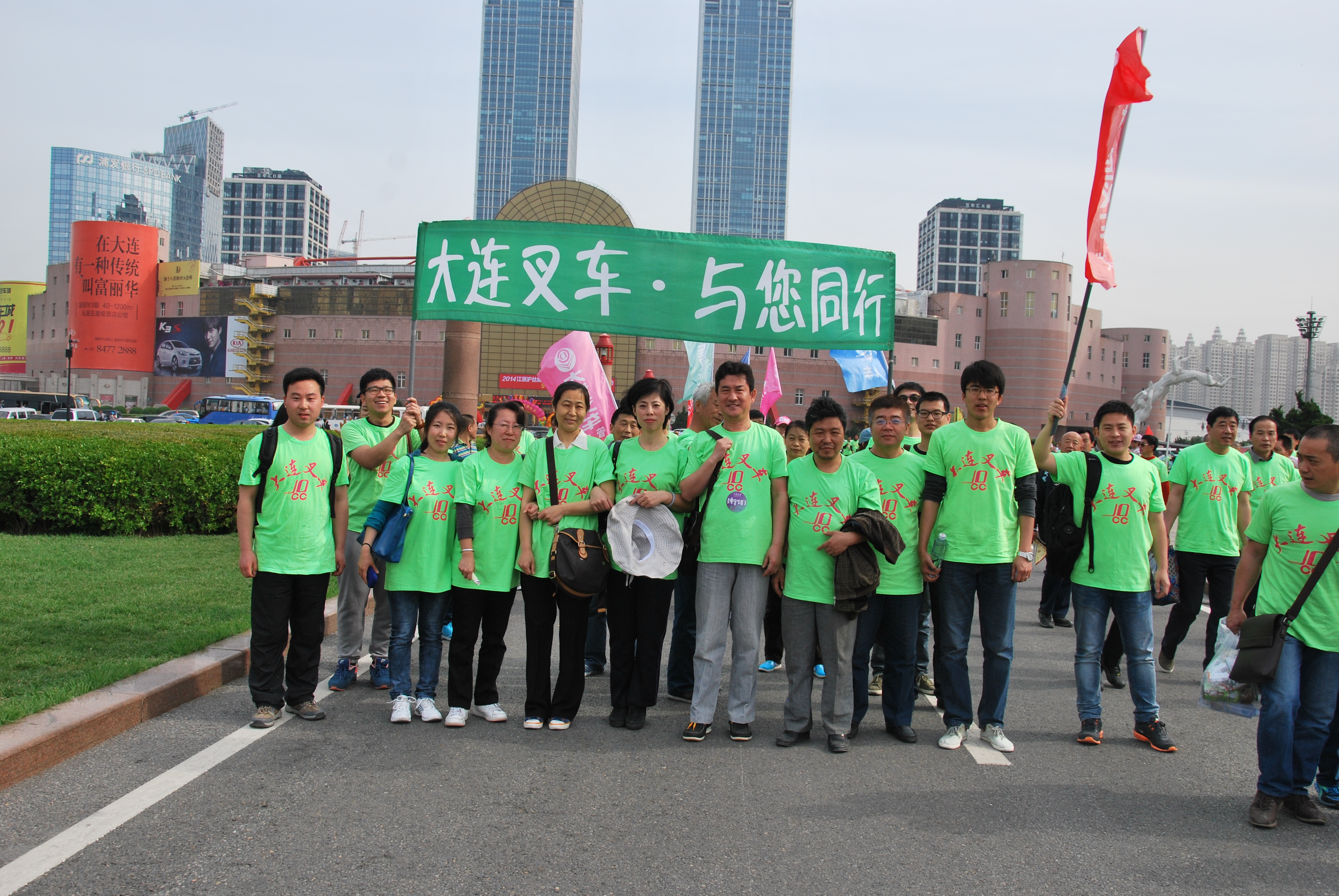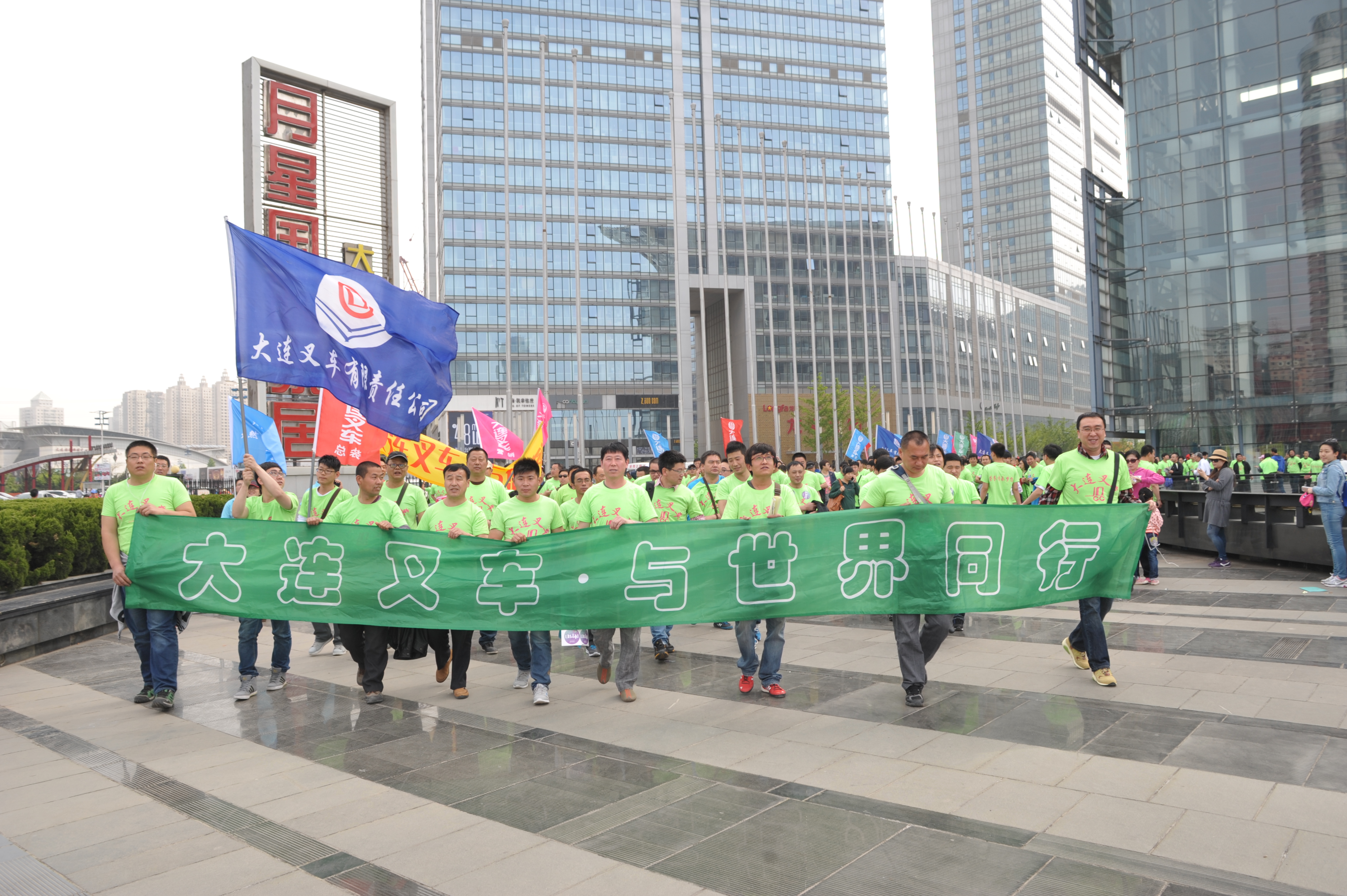 5月17日,全體員工盼望已久的大連市第十二屆國際徒步大會在星海廣場如期舉行。當日清晨,春風拂面,暖陽高照,7點鐘開始,員工們便穿著公司統(tǒng)一印制的文化衫陸續(xù)從四面八方來到集合地點,大叉員工張張笑臉如花般綻放在這個美好的春天。近600人的大叉方隊在8點鐘全部集合完畢,公司徒步活動總指揮—黨委副書記劉治云一聲令下,大連叉車的徒步隊伍便似一支充滿希望的“綠色軍團”在星海灣徐徐向前,成為第十二屆大連國際徒步大會上耀眼的亮點。