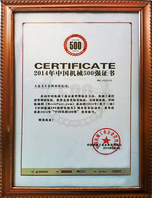 9月2日,由中國(guó)企業(yè)聯(lián)合會(huì)、中國(guó)企業(yè)家協(xié)會(huì)舉辦的“2014中國(guó)500強(qiáng)企業(yè)高峰論壇”在重慶舉行。當(dāng)天,2014年中國(guó)500強(qiáng)企業(yè)和中國(guó)500強(qiáng)制造企業(yè)正式揭曉。大連叉車有限責(zé)任公司繼續(xù)榜上有名,蟬聯(lián)中國(guó)機(jī)械500強(qiáng)。