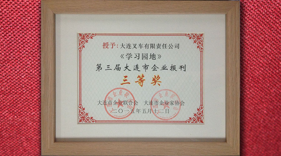 近日,在大連市企業(yè)家聯合會與大連市企業(yè)家協會聯合主辦的“第三屆大連市企業(yè)報刊評選”活動中,大連叉車有限責任公司廠刊《學習園地》在眾多企業(yè)參選作品中獲得三等獎。